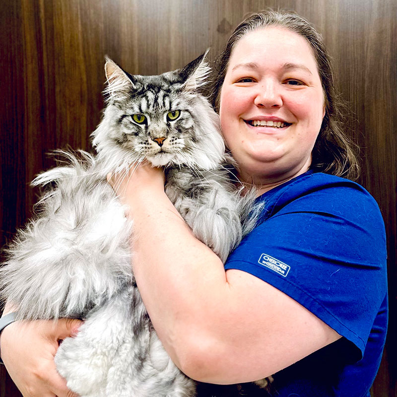 Chloe is a Certified Veterinary Technician who started as an Assistant in January of 2025. She has worked to become a technician with